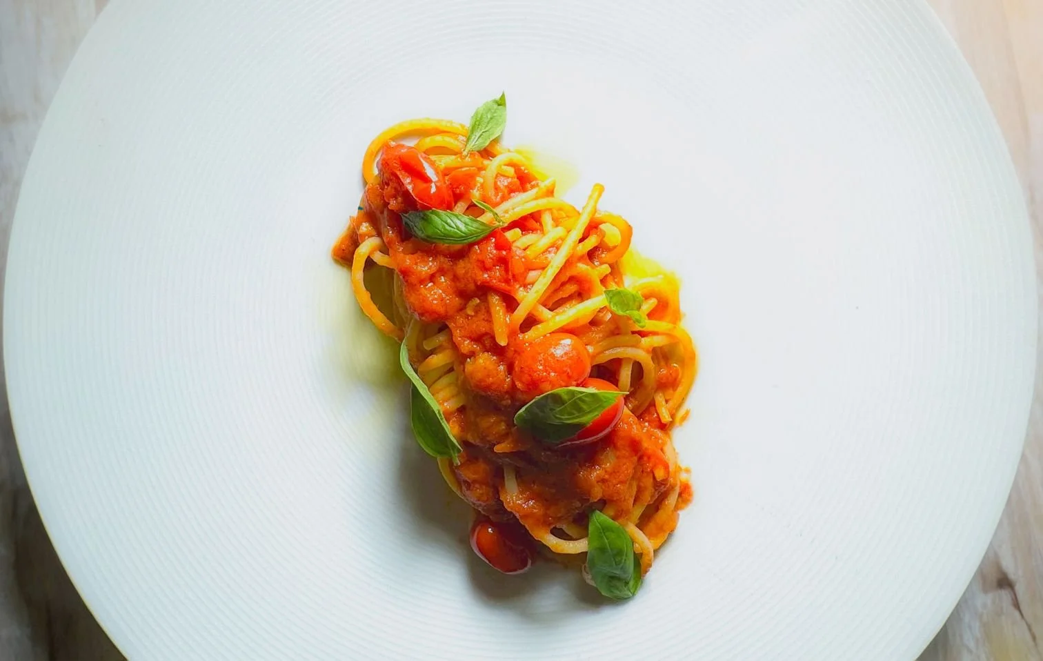 "As a native of Battipaglia, Campania", says Giuseppe Bruno, "I have always believed that true culinary excellence lies in simplicity and quality ingredients. Spaghetti al Pomodoro, prepared with a few select local products, enhances this very philosophy. Each bite takes me back to my roots and holds the passion and craftsmanship of the culinary traditions of my homeland. This dish has been on the menu since the first day my restaurants Sistina and Caravaggio opened, and it continues to represent for me a gastronomic icon of purity and authenticity."
